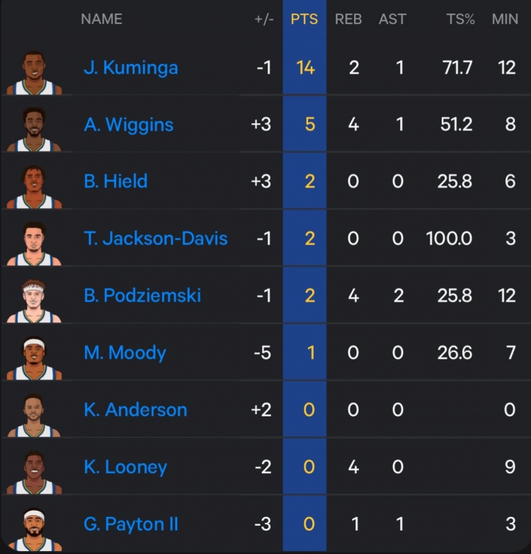 今天真大腿!庫明加末節(jié)獨攬14分&真實命中率71.7% 其他人12分