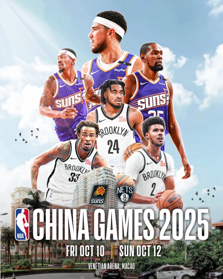 12月6日訊 NBA官方宣布,太陽(yáng)和籃網(wǎng)將在明年10月10日、12日在中國(guó)澳門進(jìn)行兩場(chǎng)季前賽。