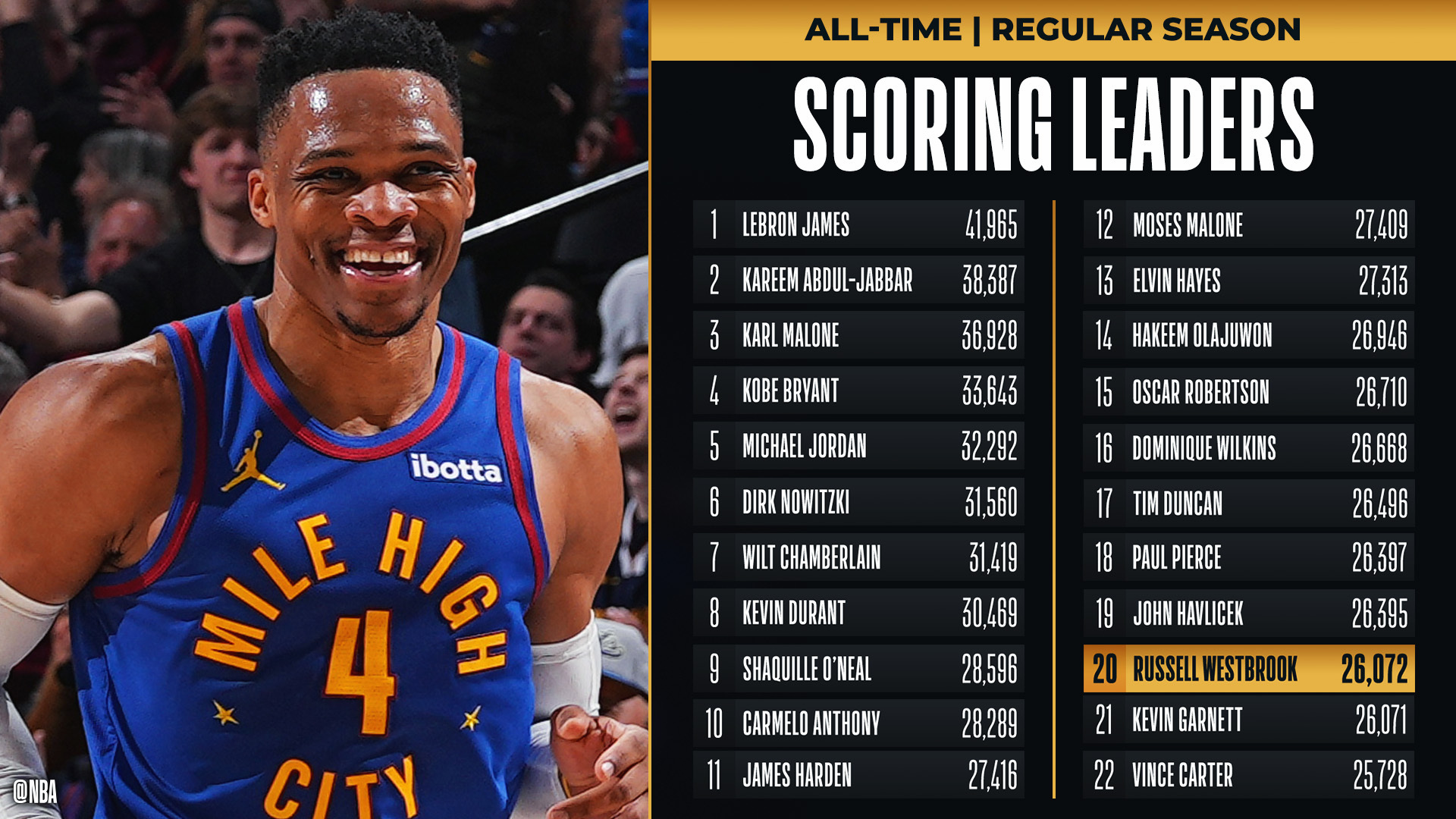 首節(jié)比賽,威少跳投命中追平,Logo三分反超,得分正式超越加內(nèi)特,獨占NBA歷史第20位!