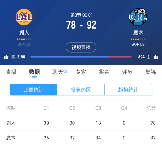 又三崩?♂?湖人第三節(jié)單節(jié)凈負魔術16分 落后14分進入末節(jié)
