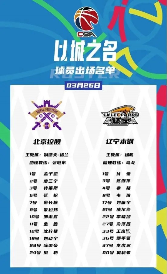北控:孟子凱、廖三寧、特萊斯、張帆、俞長(zhǎng)棟、朱松瑋、鄒雨宸、金鑫、沈梓捷、劉曉宇、陳國(guó)豪、里勒。
