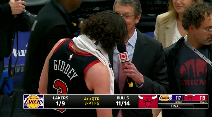 末節(jié),公牛全隊手感火熱,三分球頻頻命中,一步一步將比分推進,反觀湖人遲遲未在三分線外找到手感。最后時刻,在12.9秒的時間里公牛更是連中三記3分,其中基迪在最后時刻于Logo位置壓哨三分絕殺湖人。