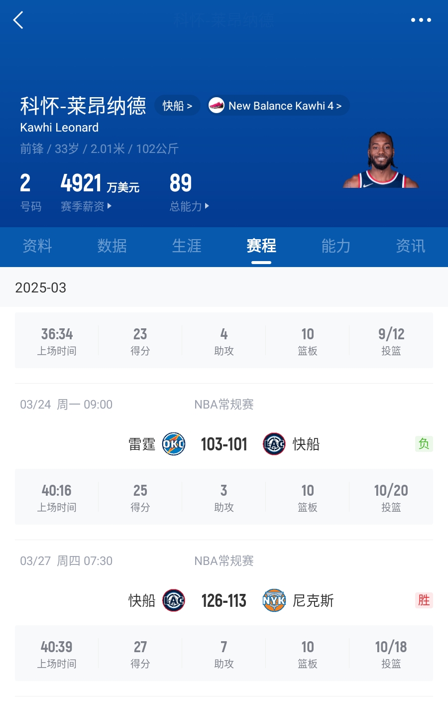 扛得住嗎萊昂納德連續(xù)2場比賽出戰(zhàn)時(shí)間超過40分鐘!