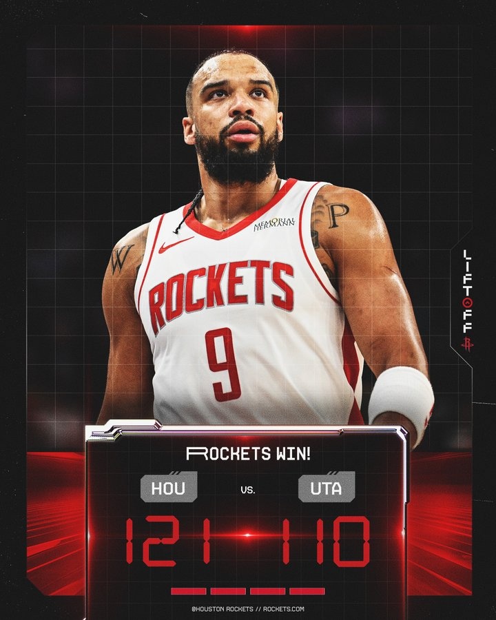 賽后火箭官方曬出本場獲勝海報,狄龍-布魯克斯登上封面。