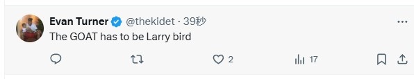 他寫(xiě)道:“歷史最佳球員必須是拉里-伯德?!?/p>
