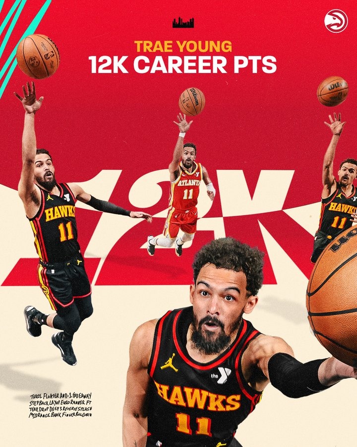截至發(fā)稿前特雷-楊已得到11分,至此他達(dá)成了生涯總得分12000+總助攻4500+里程碑,老鷹官方也送上祝賀。