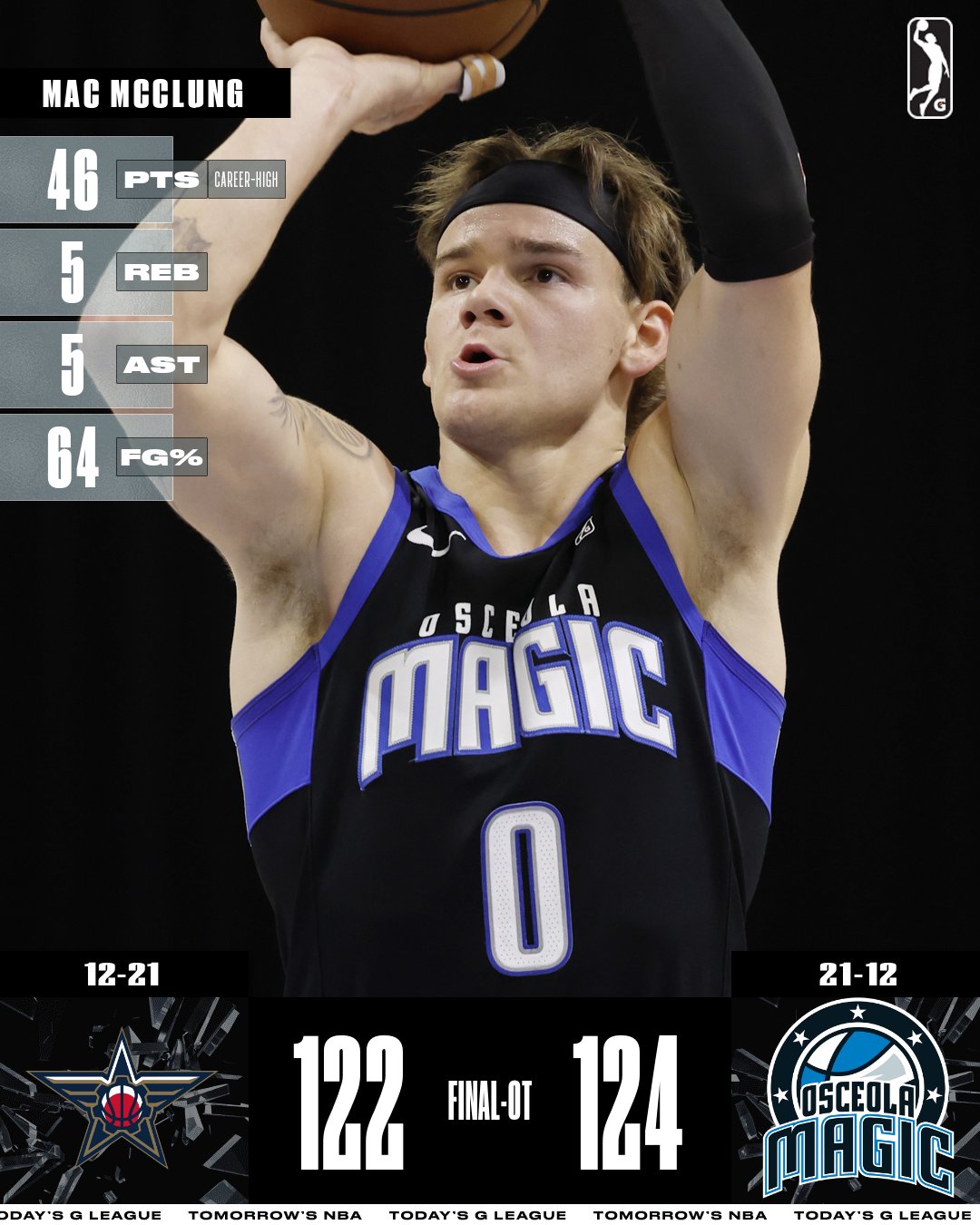- 三連扣籃王的實(shí)力麥克朗G聯(lián)盟25中16狂砍46+5+5 得分創(chuàng)新高