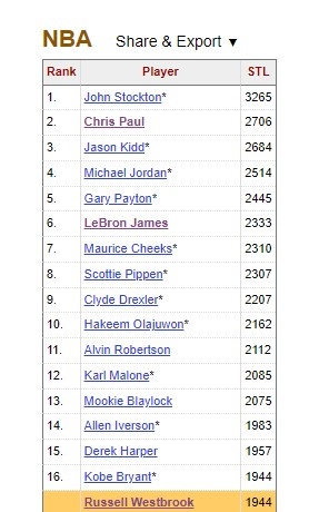 比賽第二節(jié),威少送出1次搶斷,生涯搶斷總數(shù)達(dá)到1945次,超越科比(1944次)獨占NBA歷史第16。