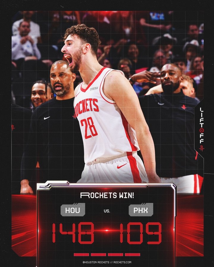 賽后火箭官方曬出本場(chǎng)贏球海報(bào),申京登上封面,烏度卡、杰夫-格林、白魔等入鏡。