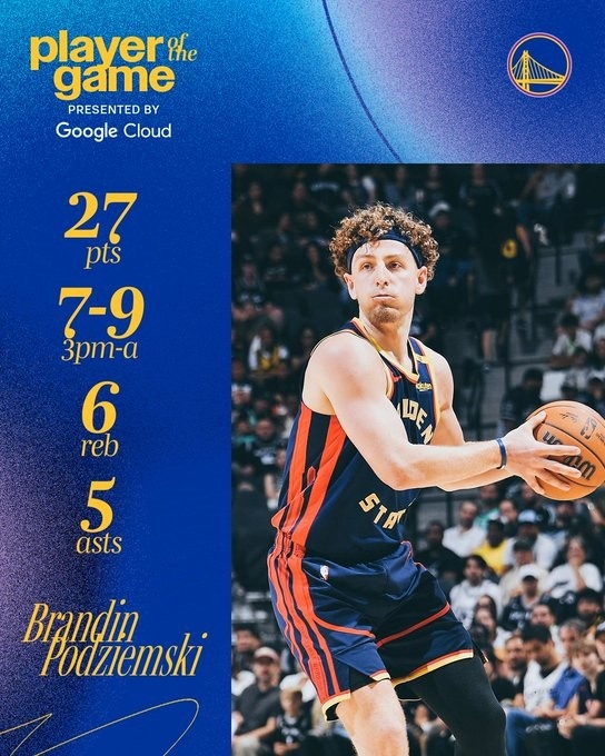 賽后,勇士官方發(fā)布波杰姆斯基本場數(shù)據(jù)海報(bào),并寫道:“生涯之夜!本場最佳球員!”