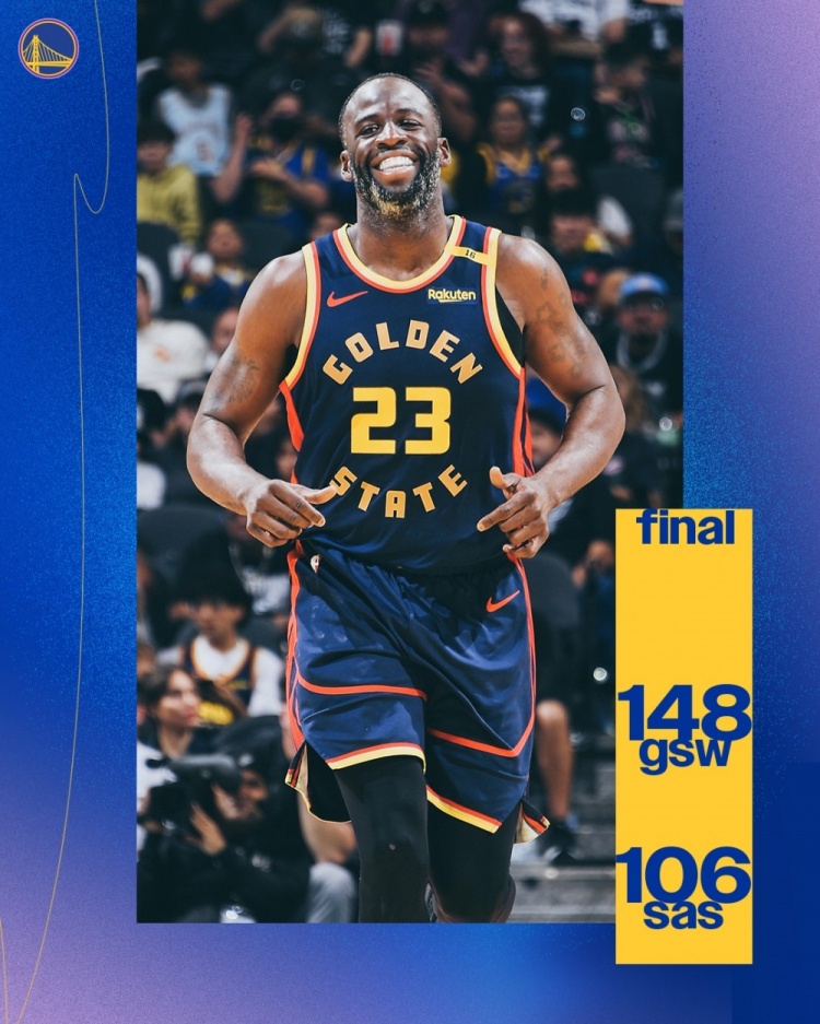 賽后勇士官方贏球海報封面人物給到了追夢格林。