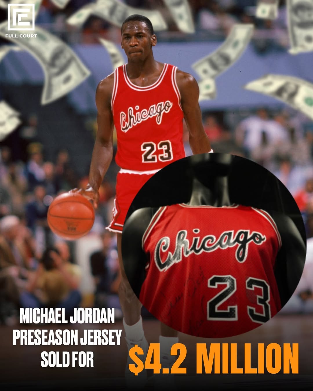 4、喬丹1984年首次代表芝加哥公牛隊(duì)出戰(zhàn)時所穿的當(dāng)場球衣,最初僅以800美元購得,如今以421萬美元在售。