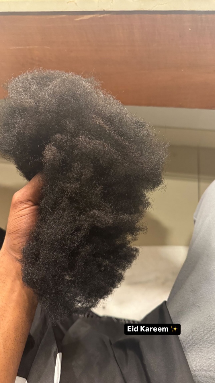 他還曬出自己手拿一大把頭發(fā)的照片,并配文道:Eid Kareem(意思為祝你有一個(gè)美好的節(jié)日)。