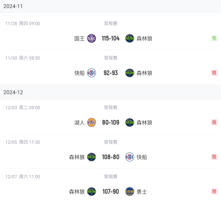 在此之后,森林狼連續(xù)擊敗了快船(2次)、湖人和勇士,取得了4連勝。