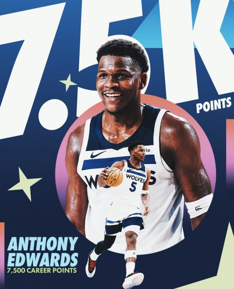 在本場比賽中,愛德華茲(23歲124天)常規(guī)賽生涯總得分突破7500,歷史第三年輕,僅次于詹姆斯和杜蘭特。