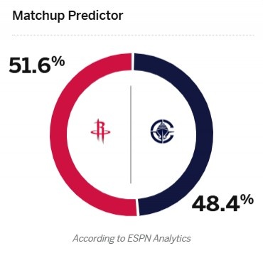 ESPN預測了本場比賽勝率,其中火箭為51.6%略占優(yōu),快船為48.4%。