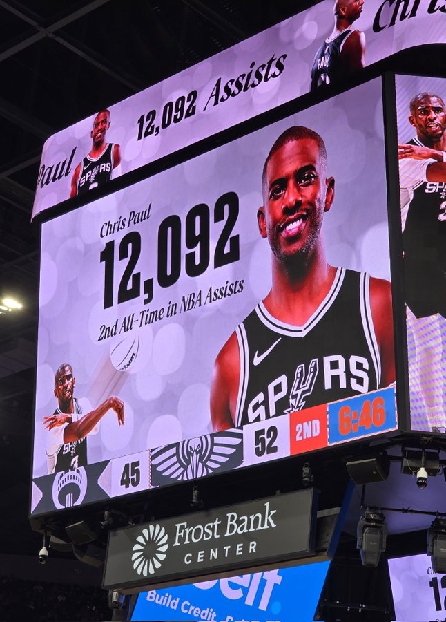 馬刺名宿吉諾比利在現(xiàn)場(chǎng)見(jiàn)證了這一時(shí)刻,他曬出球場(chǎng)上方大屏幕的照片,并寫(xiě)道:“不可思議!助攻榜歷史第二!恭喜保羅,這助攻數(shù)也太多了吧!”