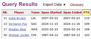 值得一提的是,約基奇在昨天的比賽中砍下生涯新高的56分,背靠背兩場比賽共砍下104分,這是1977年以來的第四高,僅次于科比、??怂购捅葼?。