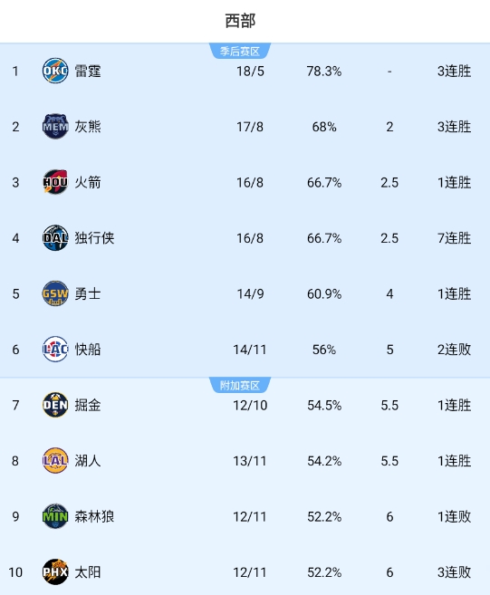 隨著今日森林狼&太陽(yáng)輸球,湖人13勝11負(fù)戰(zhàn)績(jī)上升2位回到西部第八名。