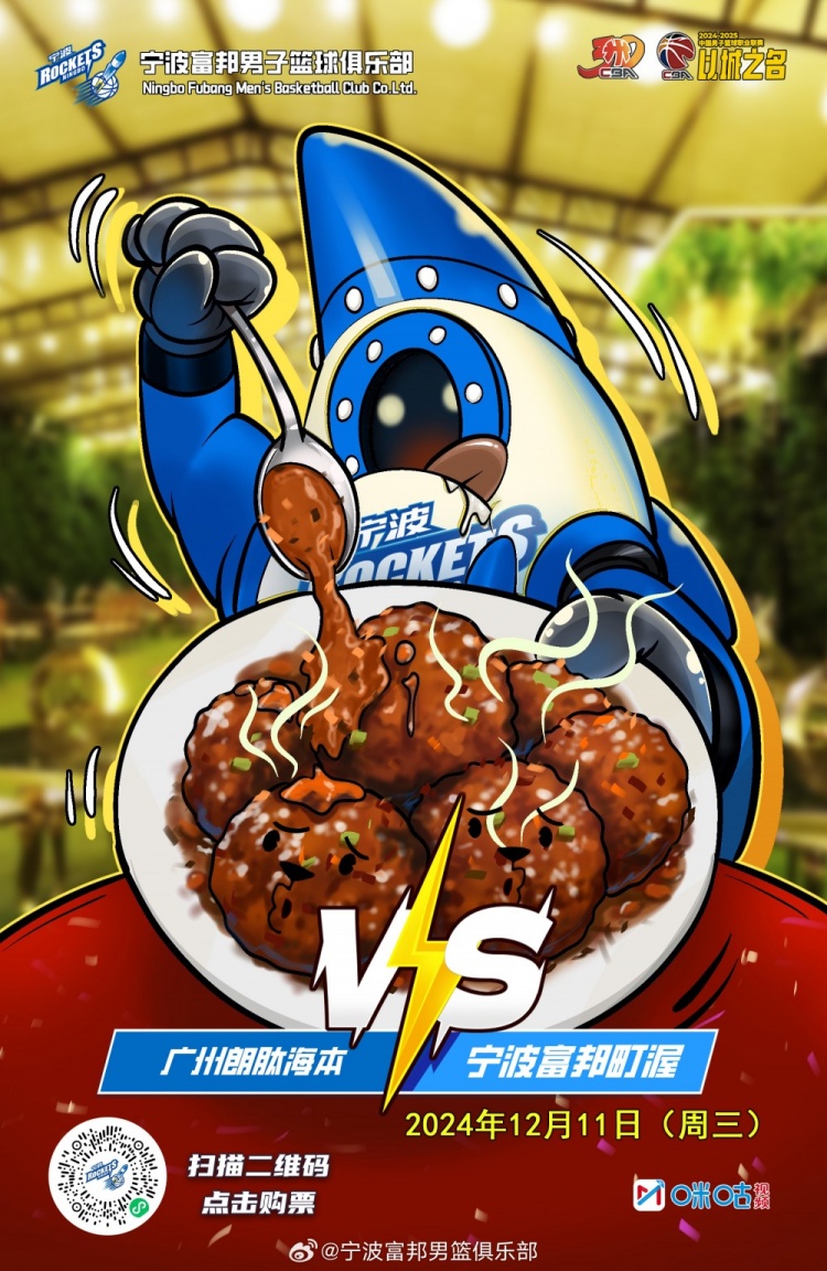 寧波隊(duì)官博寫道:“【賽事預(yù)告】靈魂澆汁!寧波富邦町渥明日客場對(duì)陣廣州朗肽海本。