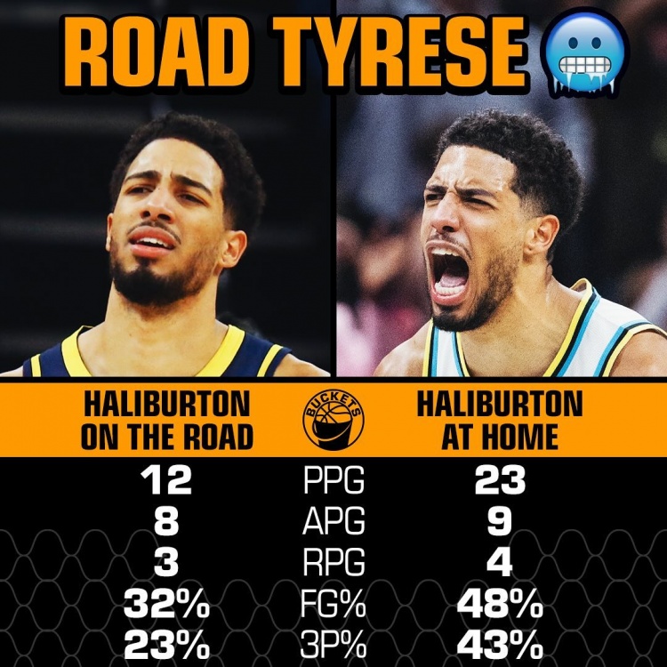 主場龍客場蟲!哈利伯頓本賽季主場場均23+9+4 客場12+8+3
