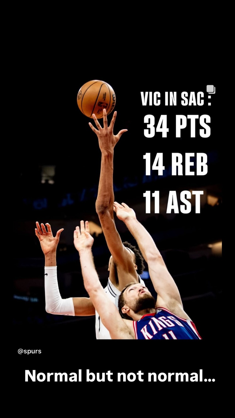 馬刺球員索漢曬出隊友文班亞馬30分三雙海報,配文寫道:“很平常但又不同尋常?!?/p>