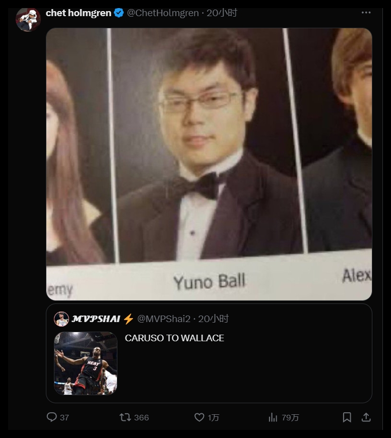 切特-霍姆格倫表示同意,他發(fā)布梗圖表示:“你懂球?。╕uno Ball 即 You know Ball)”