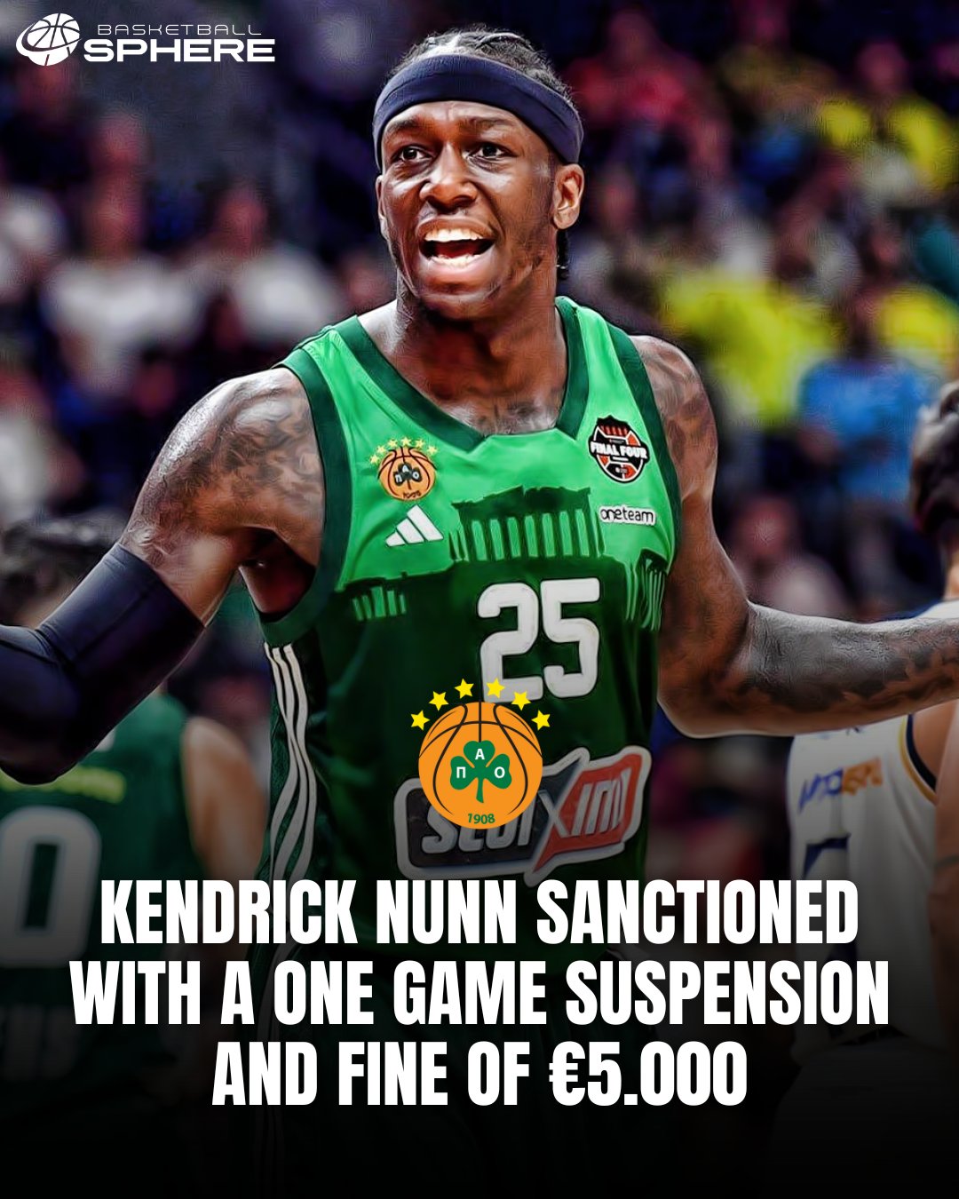 歐洲籃球聯(lián)賽今日宣布,納恩被罰款5000歐元,并停薪禁賽一場(chǎng)。