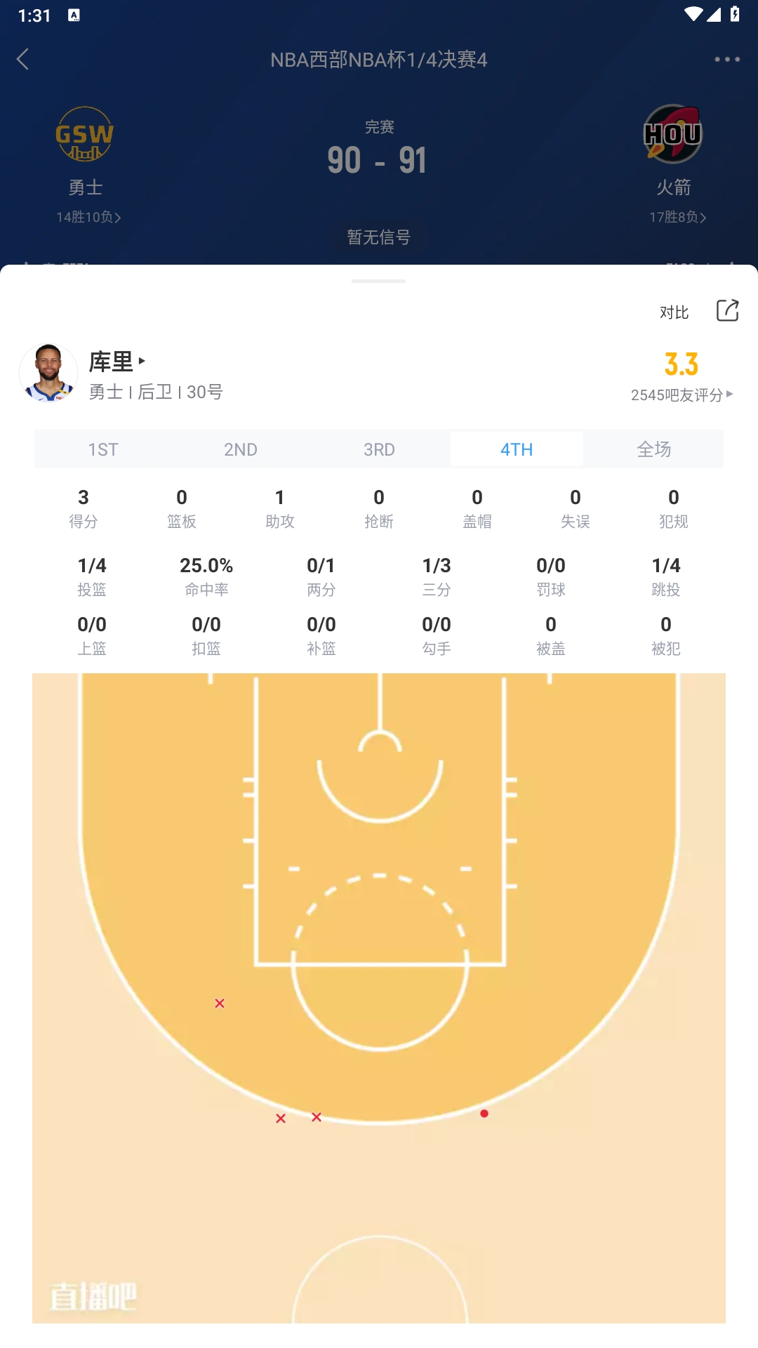 NBA杯淘汰賽,勇士90-91遭火箭逆轉(zhuǎn)無(wú)緣四強(qiáng)。