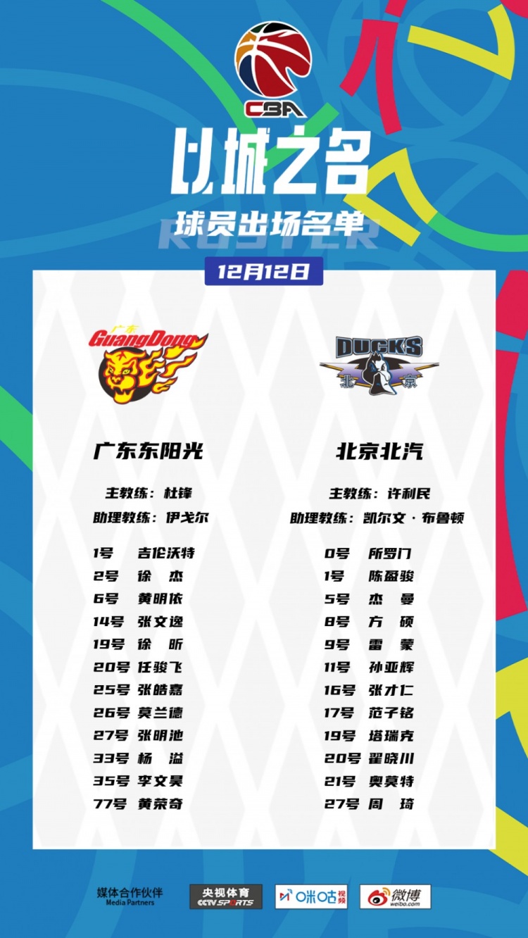 12月12日訊 CBA常規(guī)賽,廣東VS北京的比賽將在稍后開始。