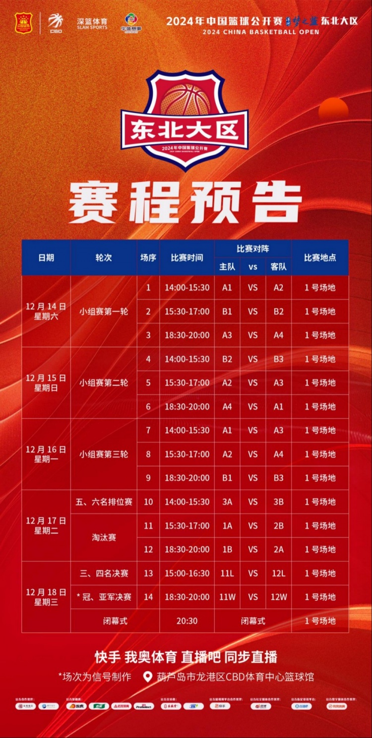 12月14日-18日,2024年中國(guó)籃球公開(kāi)賽洋河夢(mèng)之藍(lán)東北大區(qū)賽將在遼寧省葫蘆島開(kāi)打。來(lái)自北京、天津、石家莊、沈陽(yáng)、吉林、盤錦、鶴崗賽區(qū)的7支男子球隊(duì)將展開(kāi)激烈較量。讓我們一起細(xì)數(shù)東三省賽區(qū)的隊(duì)伍情況。
