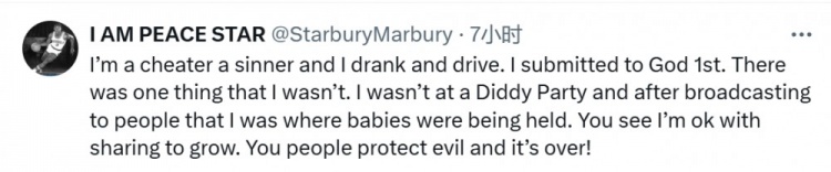 馬布里回復(fù):“我是一個(gè)騙子、一個(gè)罪人,我酒后駕車。但我首先服從于上帝。但是有一件事我沒做,我沒在吹牛老爹的派對(duì)上,我沒有向人們廣播說(shuō)我曾在關(guān)押嬰兒的地方。你看,我同意通過(guò)分享來(lái)成長(zhǎng)。而你們這些人卻保護(hù)邪惡。結(jié)束這一切吧!”