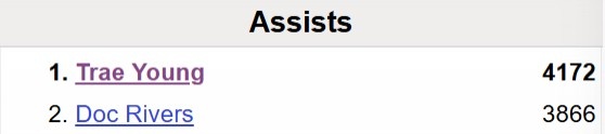 (老鷹隊(duì)史助攻榜:特雷-楊第一、里弗斯第二)