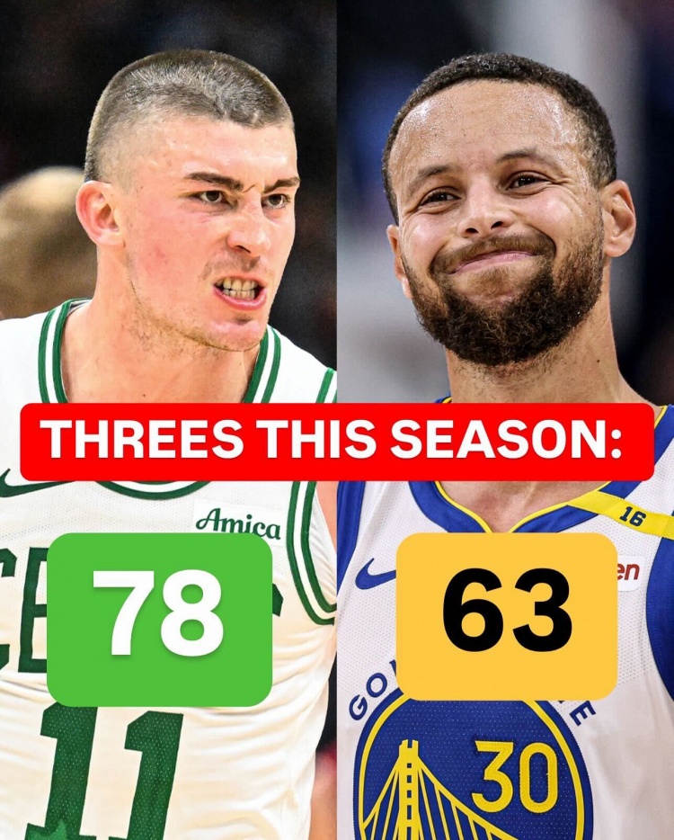 布朗曬出隊(duì)友普理查德與庫里本賽季三分命中數(shù)對(duì)比:普理查德本賽季至今命中78記三分,庫里為63記。