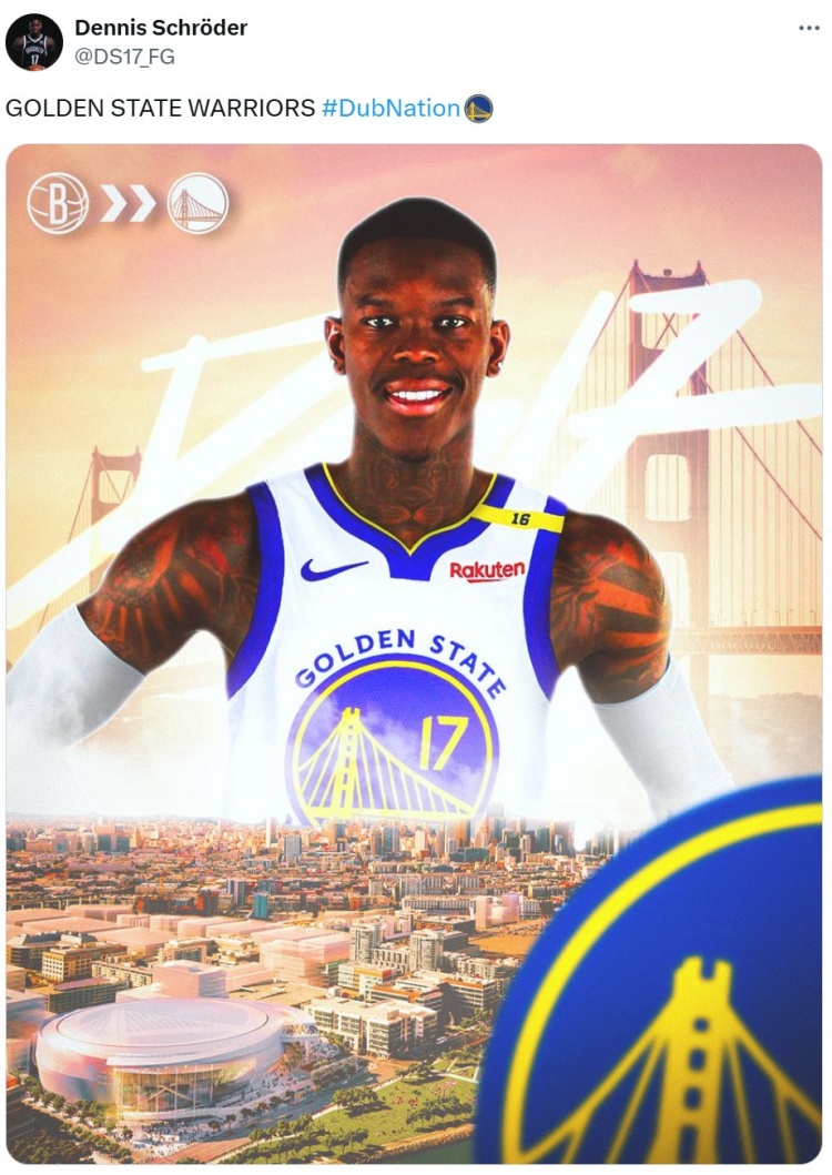 施羅德更推曬出了自己身穿勇士球衣的照片(P圖),并寫道:“金州勇士#勇士王國(guó)?!?/p>