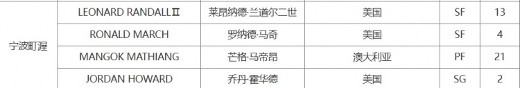 其中,寧波注冊(cè)外援萊昂納德-蘭道爾二世,取消注冊(cè)外援尼古拉斯-拉科塞維奇。