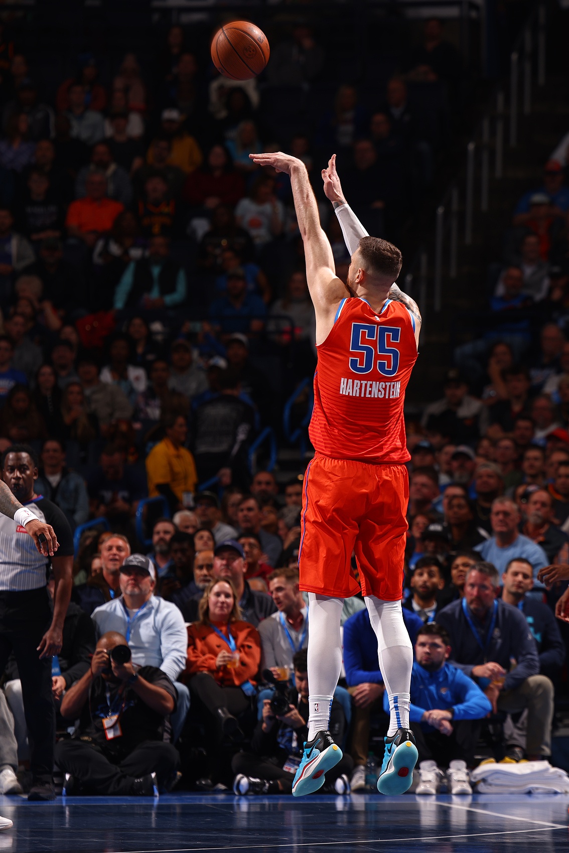 此役雷霆中鋒哈爾滕施泰因面對舊主攻防兩端表現(xiàn)極為出色,進攻端高效輸出,拋投、暴扣樣樣都有,防守端也給予對手很大的限制,打了33分鐘12投9中,罰球4中3拿到21分8籃板2助攻1蓋帽,正負值+7。