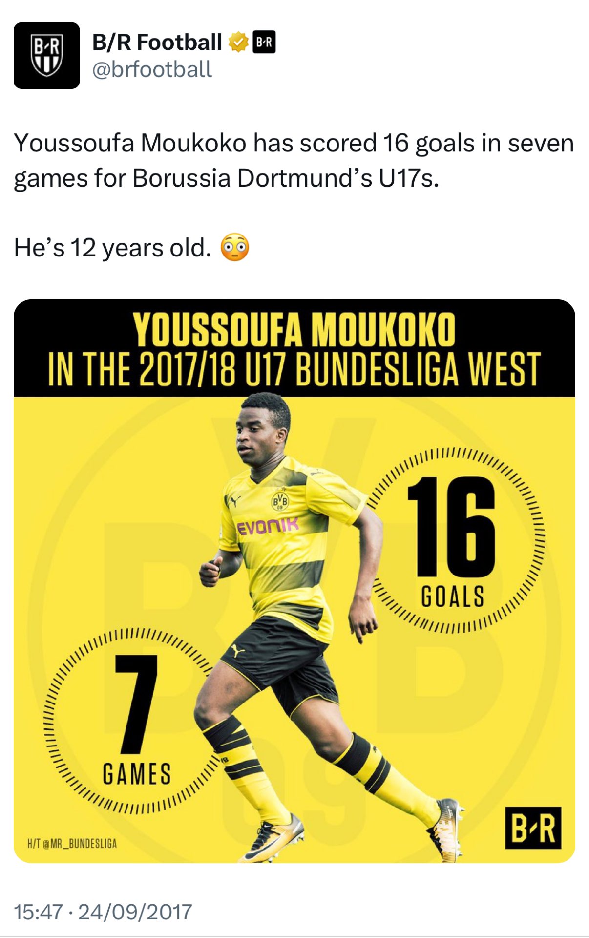 12歲穆科科在U17的7場比賽打進(jìn)16球,結(jié)果他其實(shí)那時(shí)候是16歲?