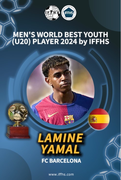 繼佩德里(2021年)和貝林厄姆(2022年和2023年)之后,亞馬爾是第三位獲得2024年IFFHS男子世界最佳青年球員獎(jiǎng)的球員!亞馬爾去年在該獎(jiǎng)項(xiàng)排名第四,2024年他獲得了一致好評(píng),獲得了303分,這是該獎(jiǎng)項(xiàng)設(shè)立以來(lái)的最高分!