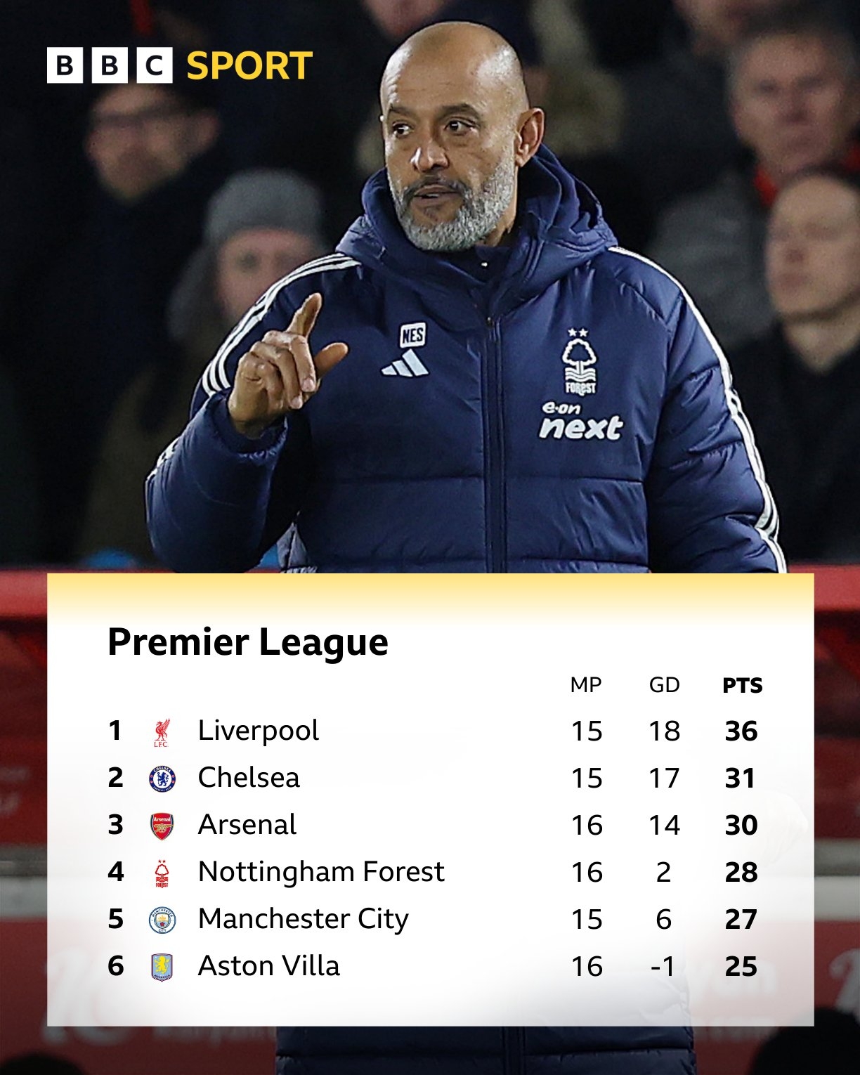 努諾接手諾丁漢森林時,球隊排名第英超第17。本賽季英超,森林8勝4平4負暫排第四,先后戰(zhàn)勝了利物浦、曼聯(lián)、阿斯頓維拉等強隊。