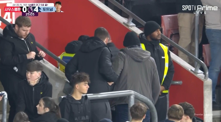 12月16日訊 熱刺vs圣徒第25分鐘,薩爾破門,熱刺4-0了!轉(zhuǎn)播鏡頭給到,這么早就有圣徒球迷開始走人了!