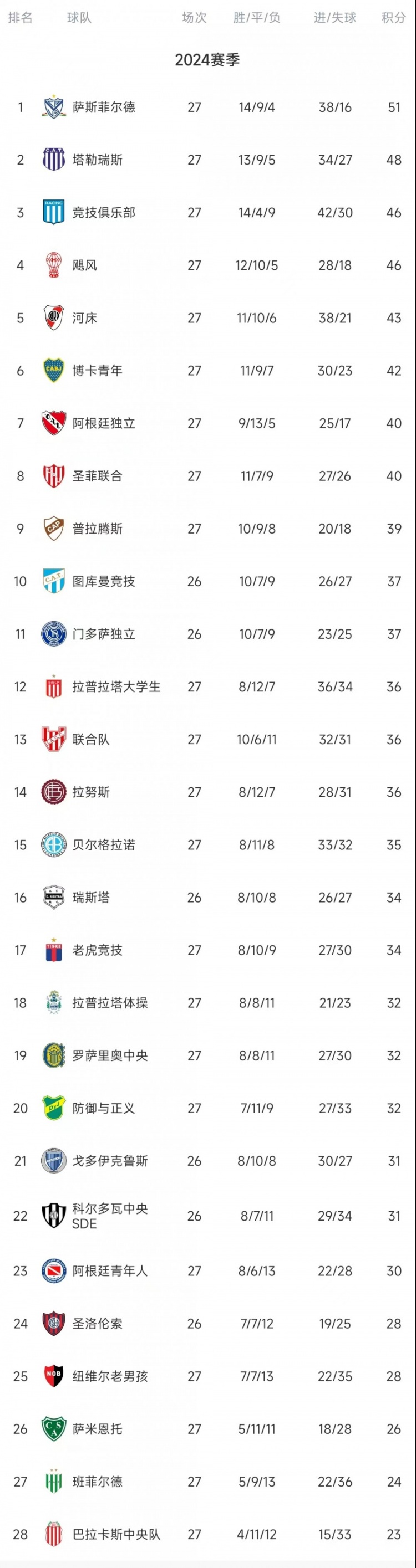 12月16日訊 阿根廷職業(yè)聯(lián)賽最后一輪多場(chǎng)比賽戰(zhàn)罷,薩斯菲爾德獲得本賽季聯(lián)賽冠軍。