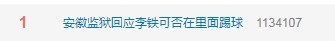 于是在今天,隨著網(wǎng)友們的愈發(fā)關(guān)注,“安徽監(jiān)獄回應(yīng)李鐵可否在里面踢球”的詞條,登上了微博熱搜榜首。