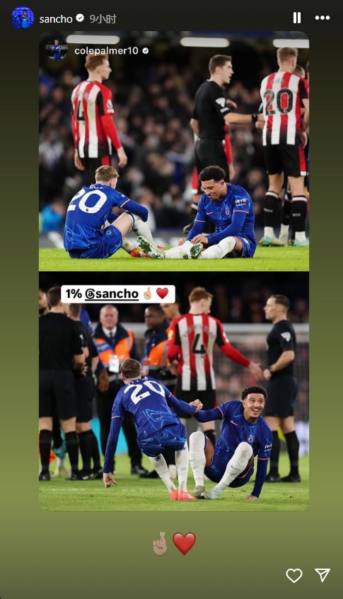 而此時(shí),帕爾默和桑喬早已坐在草地上閑聊,沒有加入兩邊的大規(guī)模爭吵。賽后帕爾默還發(fā)社媒@了桑喬,后者也進(jìn)行了轉(zhuǎn)發(fā)。