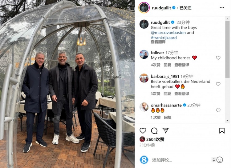 12月16日訊 荷蘭傳奇球星古利特更新社媒動態(tài),曬出與范巴斯滕、里杰卡爾德的合照。