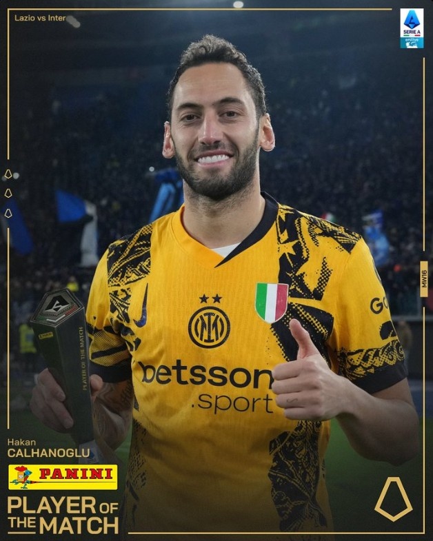 12月17日訊 本輪意甲,國米6-0客勝拉齊奧。此役恰爾汗奧盧發(fā)揮出色傳射建功。賽后,球員當(dāng)選意甲官方全場最佳球員。