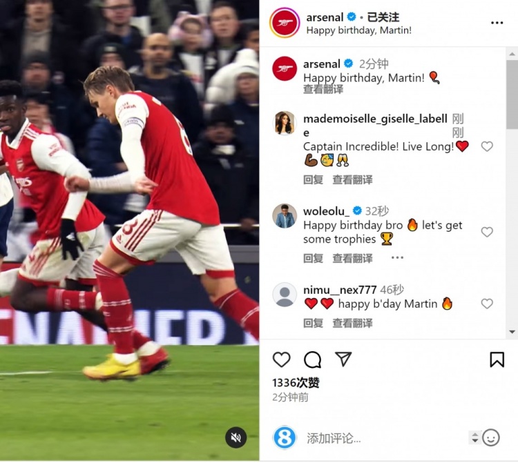 阿森納官方社媒曬出厄德高精彩表現(xiàn)的集錦視頻,配文:“生日快樂(lè),馬?。ǘ虻赂撸 ?/p>