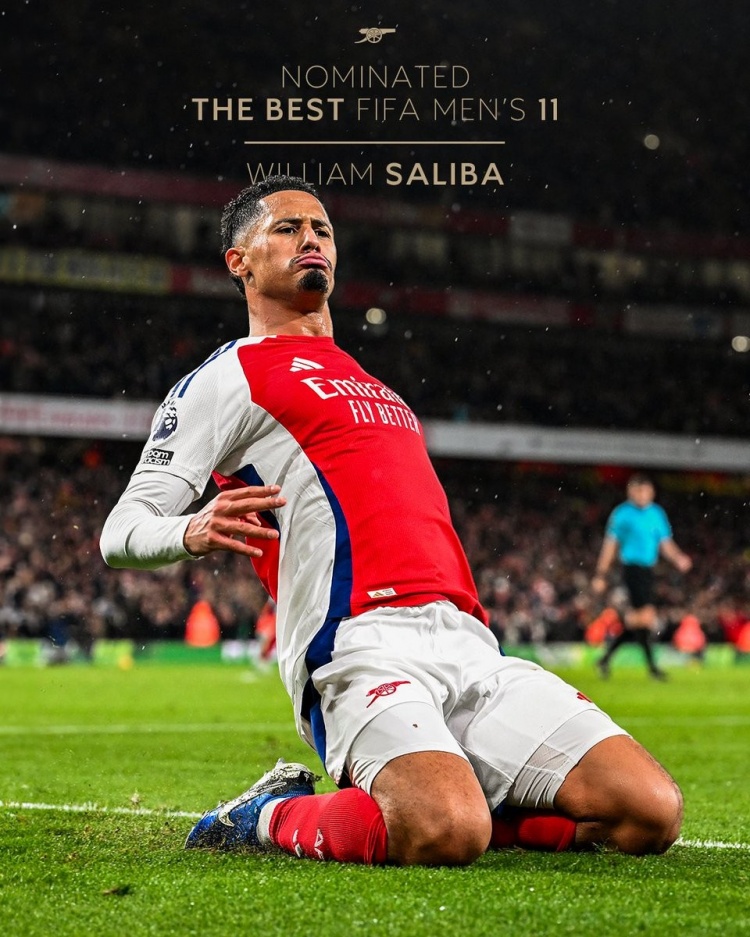 阿森納官方也通過社媒曬出海報祝賀,并配文:“我們的威洛(薩利巴的昵稱)。祝賀你入選FIFA年度最佳陣容?!?/p>