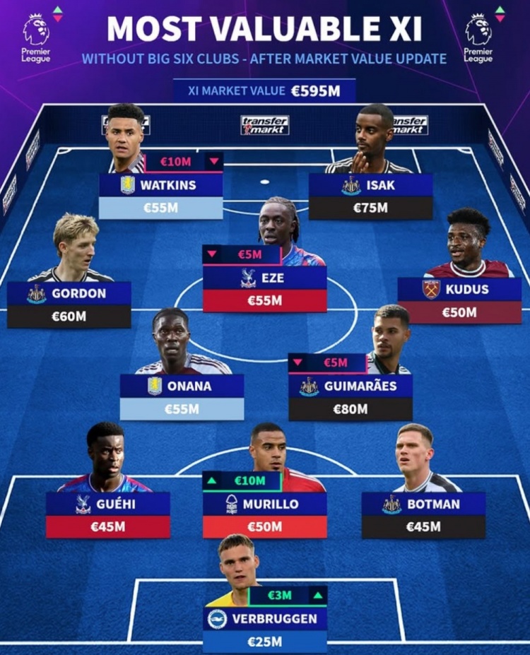 12月18日訊 《轉(zhuǎn)會(huì)市場(chǎng)》在近日更新了英超球員身價(jià)榜,并列出了一套非BIG6球員最貴陣,紐卡4將在列。