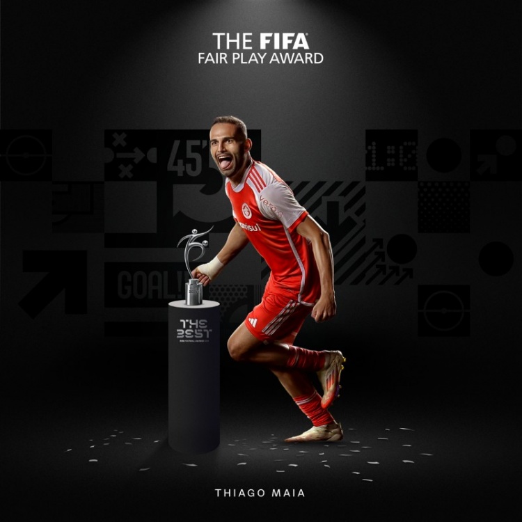12月18日訊 FIFA公布了2024年公平競(jìng)賽獎(jiǎng),27歲的巴西中場(chǎng)蒂亞戈-邁亞當(dāng)選。